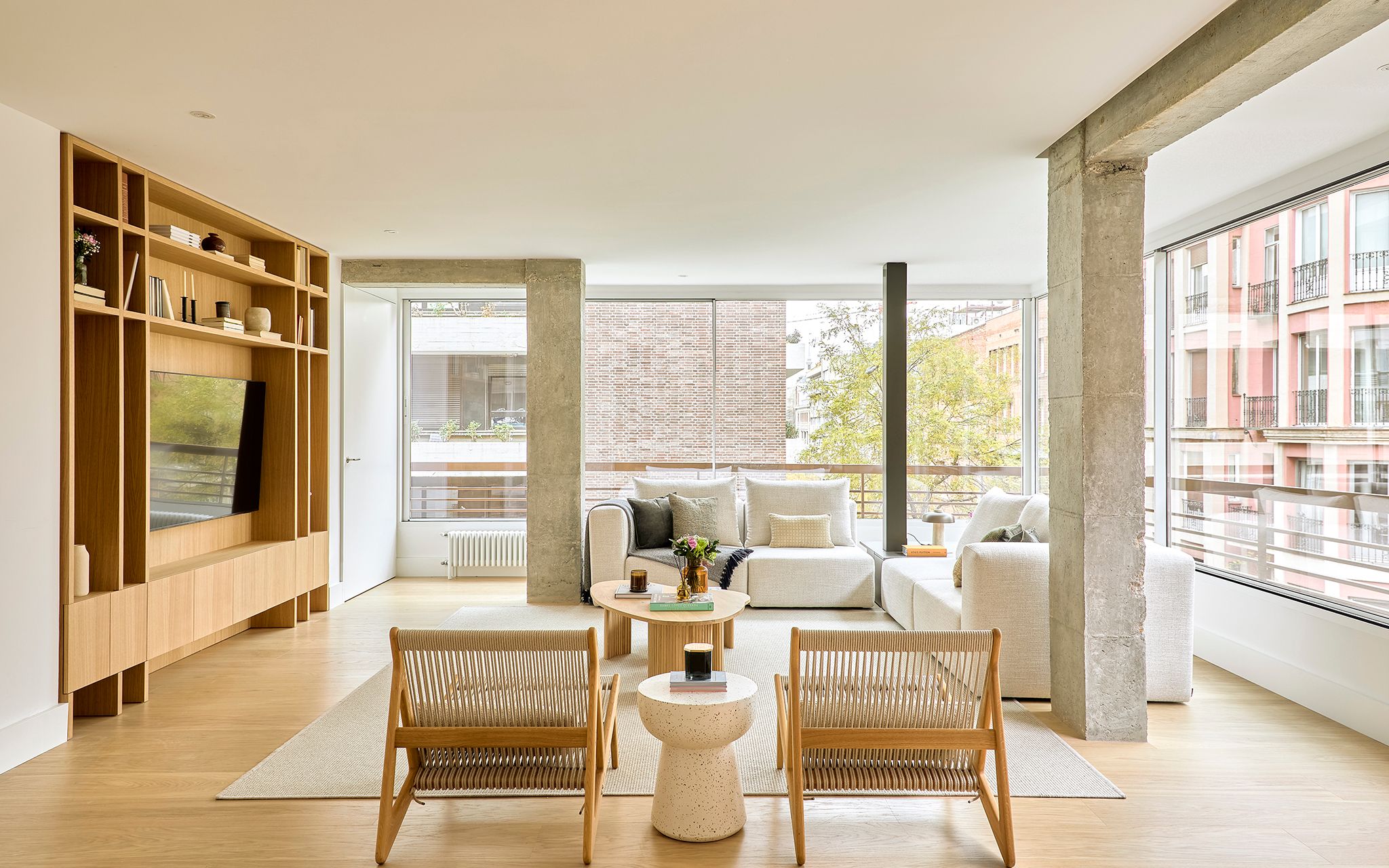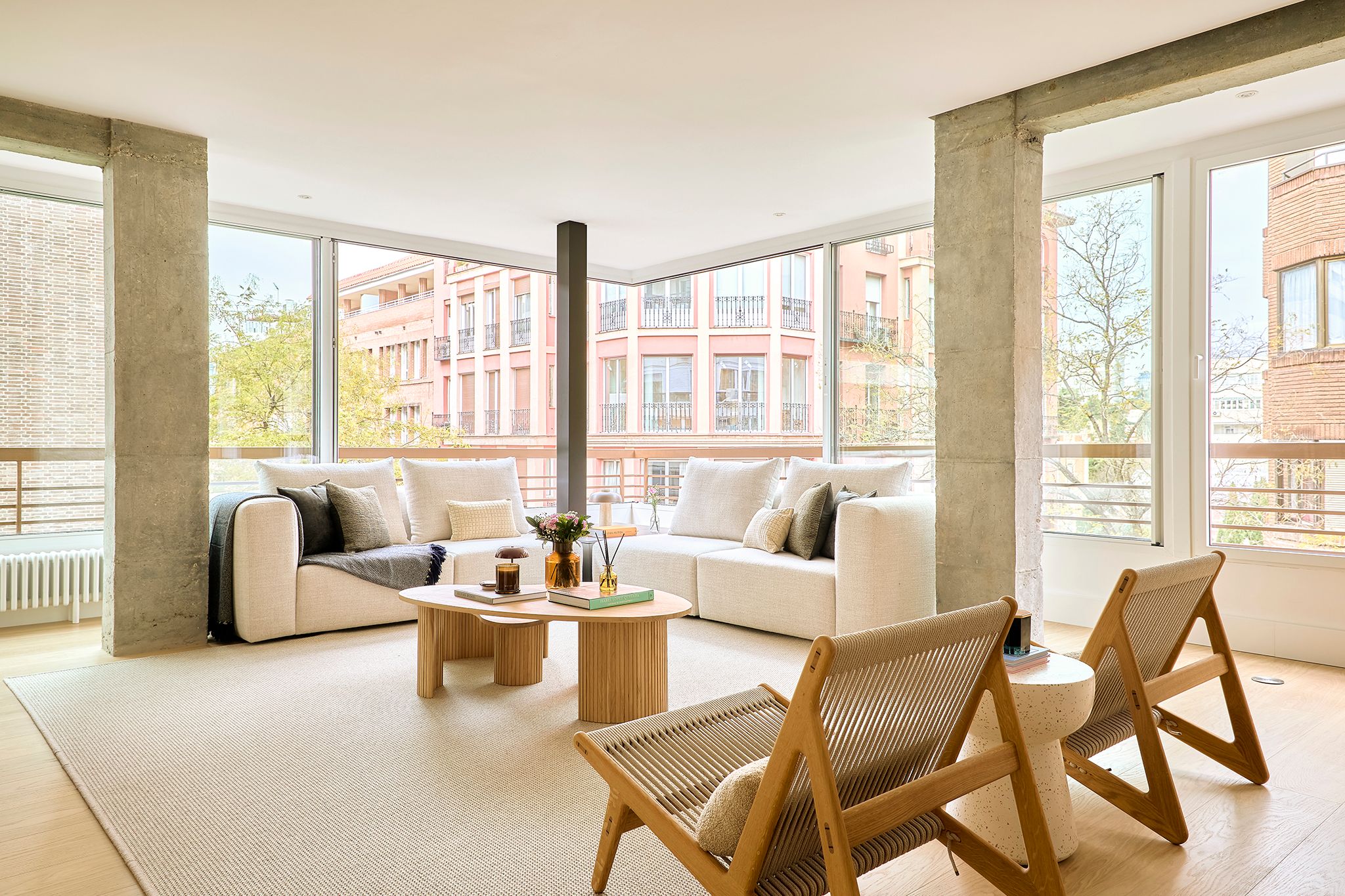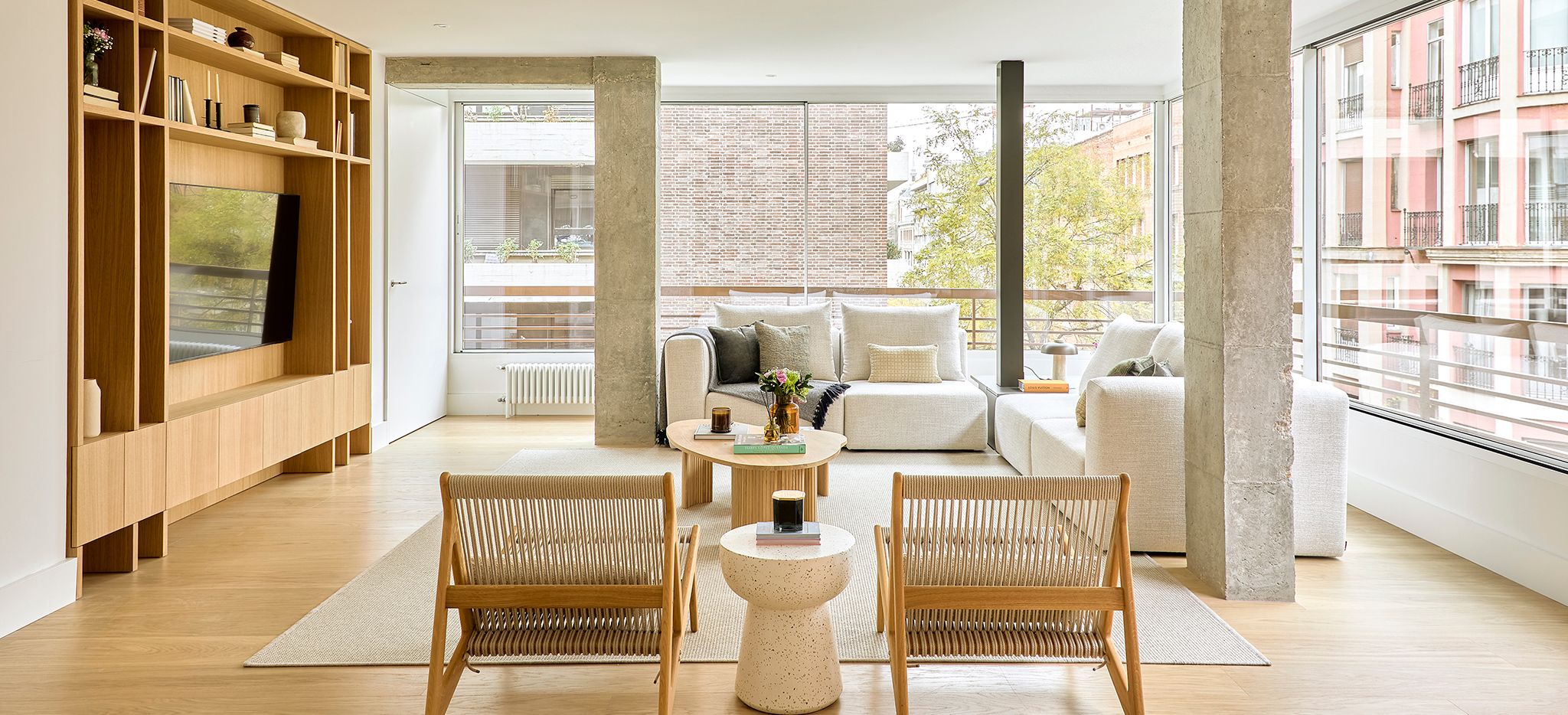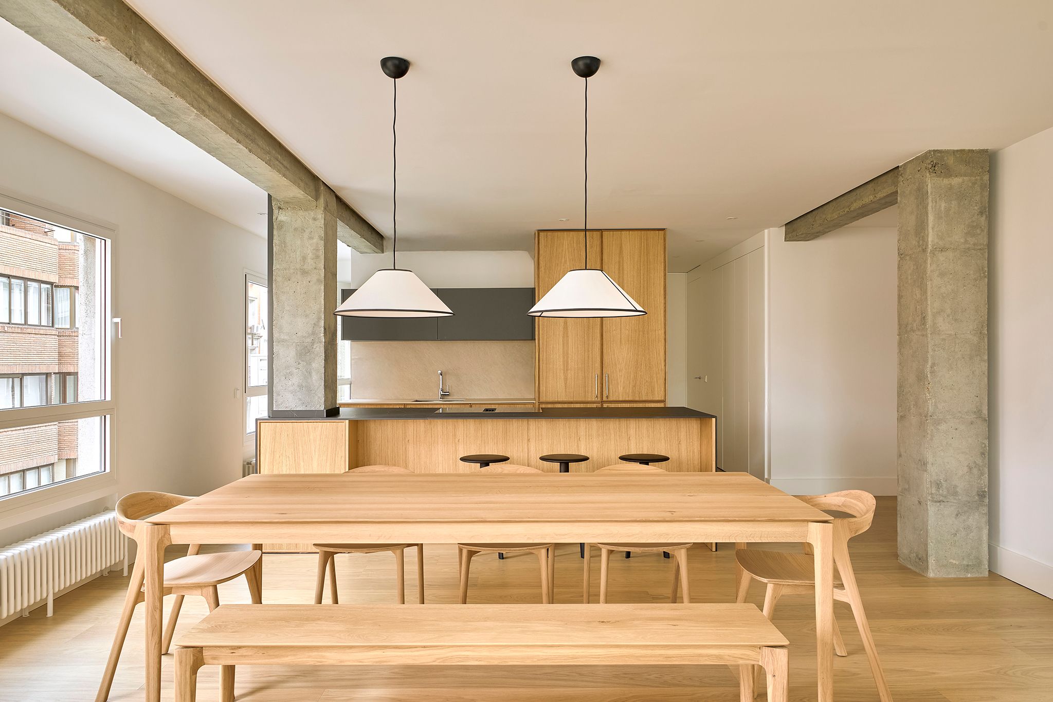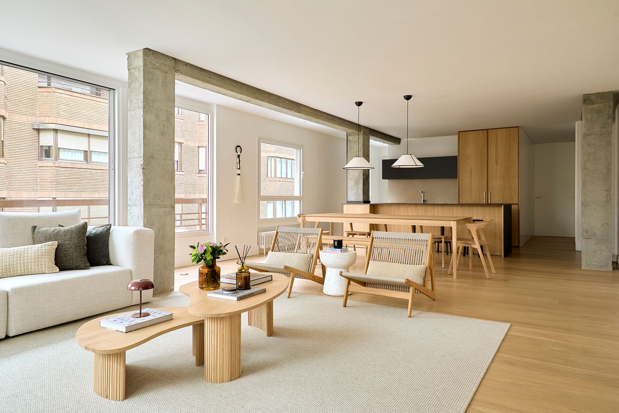 _Piso de estilo nórdico donde la madera natural domina con muebles a medida y piezas danesas icónicas. Un diseño sereno y funcional destaca la luz, la calidez y las vistas, creando un interior atemporal y acogedor.